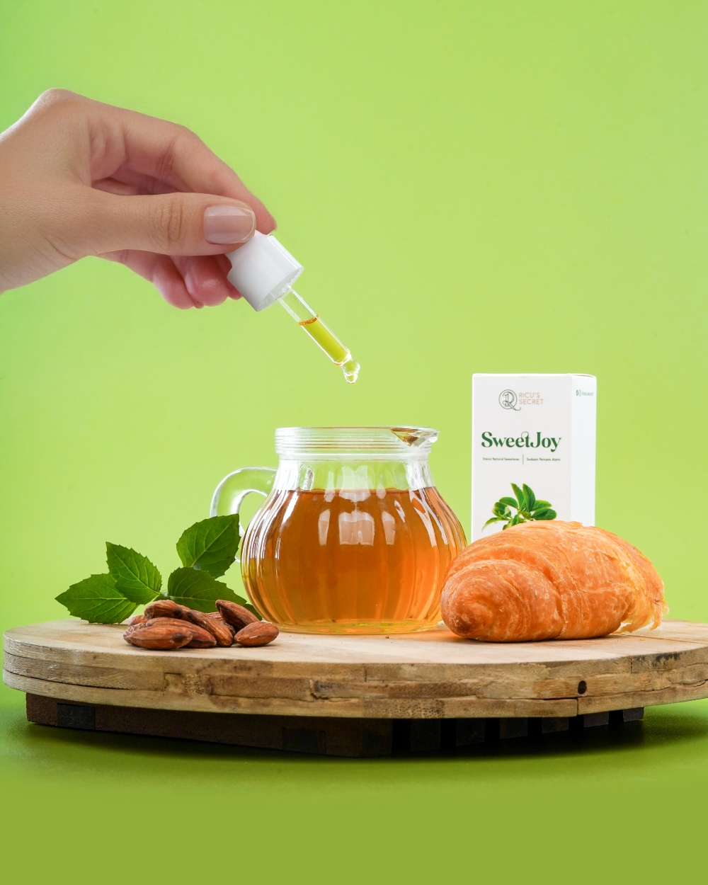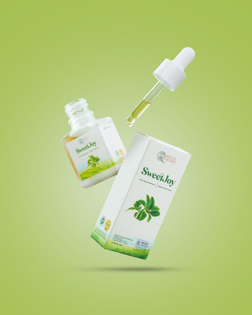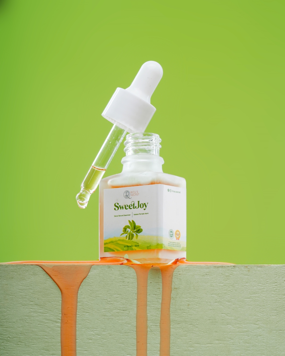 pemanis alami pengganti gula yang berasal dari ekstrak daun stevia dengan kandungan 100% alami, bebas gula, 0 kalori, dengan tingkat kemanisan 2x lebih manis dari gula pasir sehingga cukup dengan 1-2 tetes saja. Aman untuk penderita diabetes. telah lulus BPOM dan memiliki sertifikat Halal.